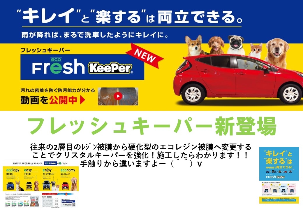新車にはこのEXキーパーをお勧めしております!!このEXキーパーは一言でいうと艶が半端ないです!!しかも撥水性も優れており汚れ方も違うので洗車回数は減ります。往来のクリスタルやダイヤモンドももちろん素晴らしいコーティングですが被膜が異なるのでコーティングに付き物の撥水阻害被膜も低減されており感動ものです!!価格は高額ですが価値ある仕上がり間違いなしです!!新車だけでなくても施工は可能です(塗装状態によっては研磨必要)是非、次元の違う艶を求めてみませんか?詳細は店頭にてスタッフ対応や電話でも受け付けていますので宜しくお願い致します。
