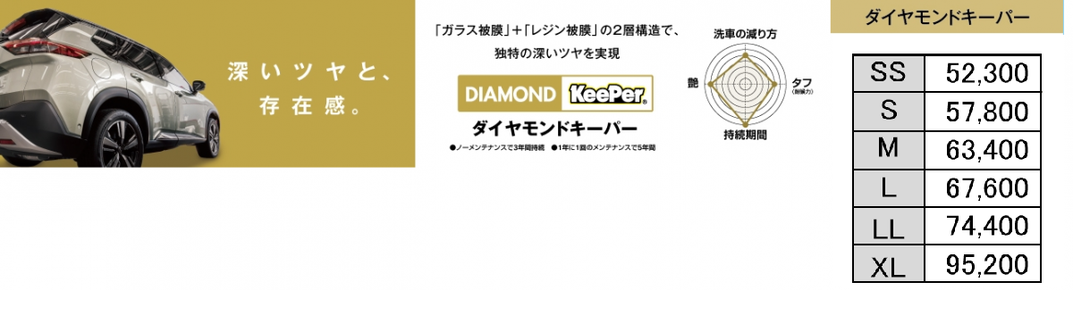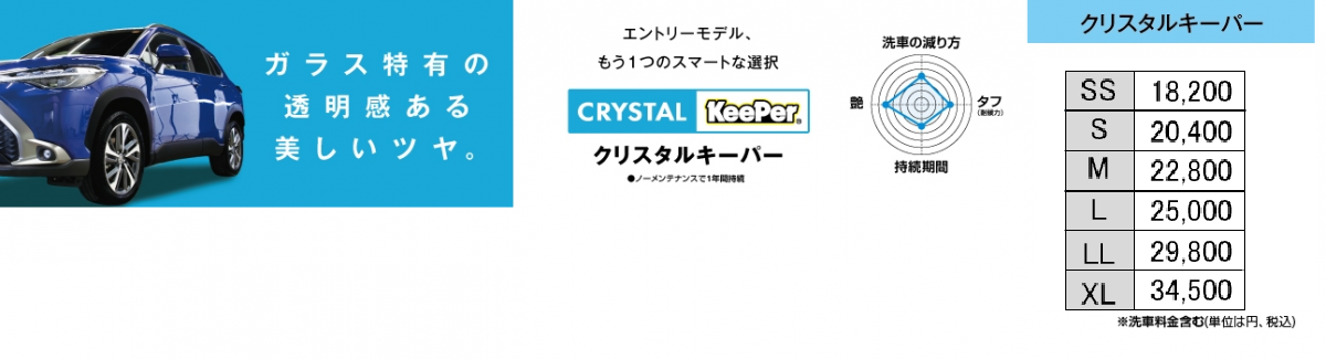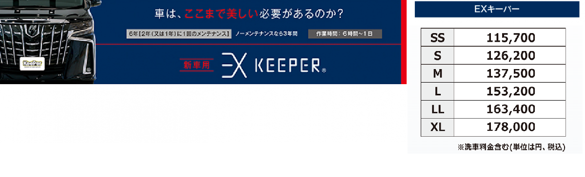 KeePerコーティングは、お車の大きさで施工料金が変わります。