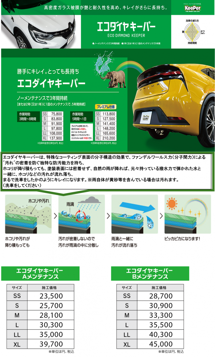 キーパーコーティングは、塗装を守るだけでなく、そのキレイを長くキープ致します。