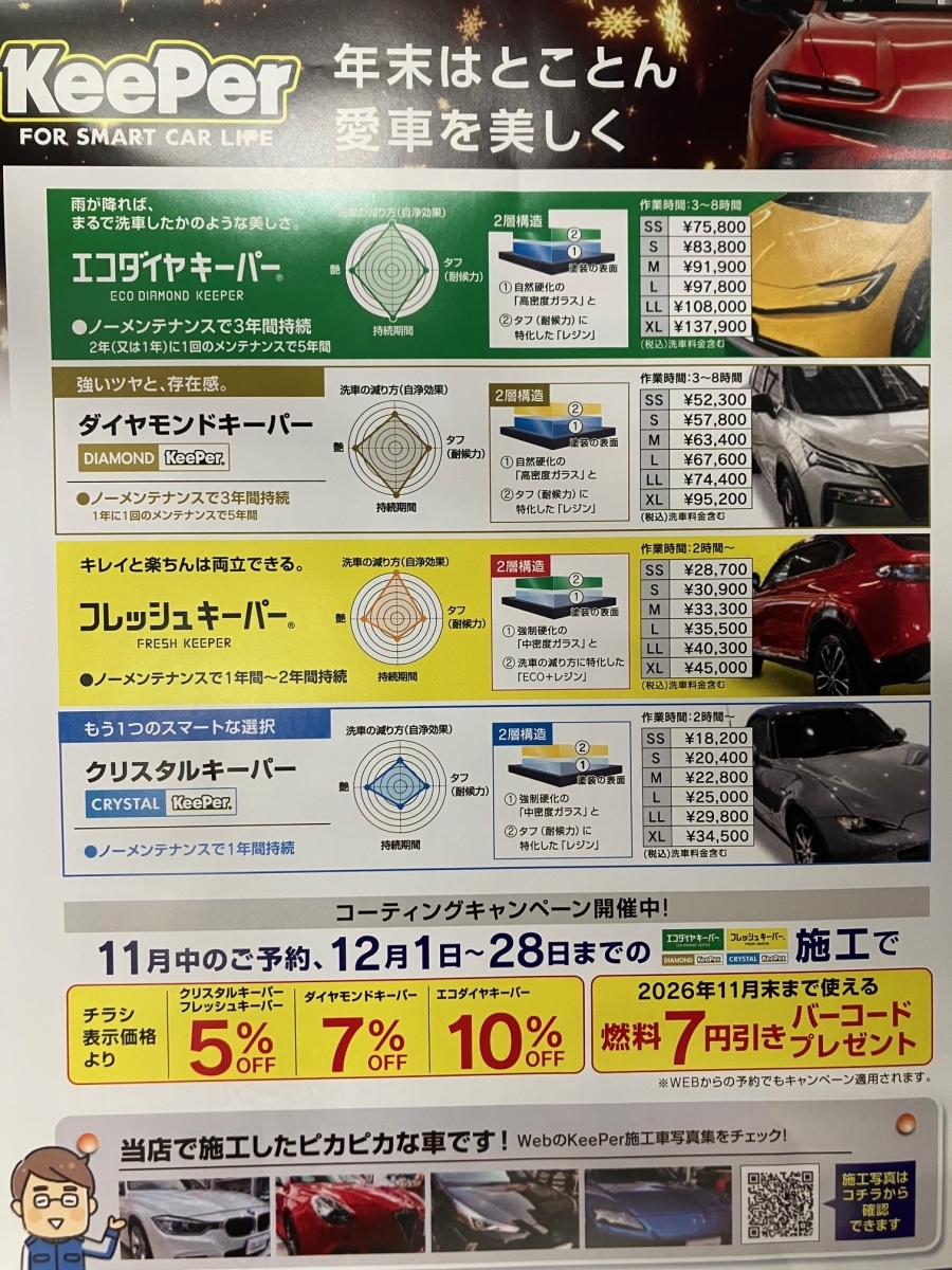 いつも閲覧・ご利用ありがとうございます。キーパー 住吉イースト 店長です。今、行っておりますコーティング祭好評で、後半はとてもたくさんのお客様にご予約いただいております。前半はまだ空きもあります。ぜひ...
