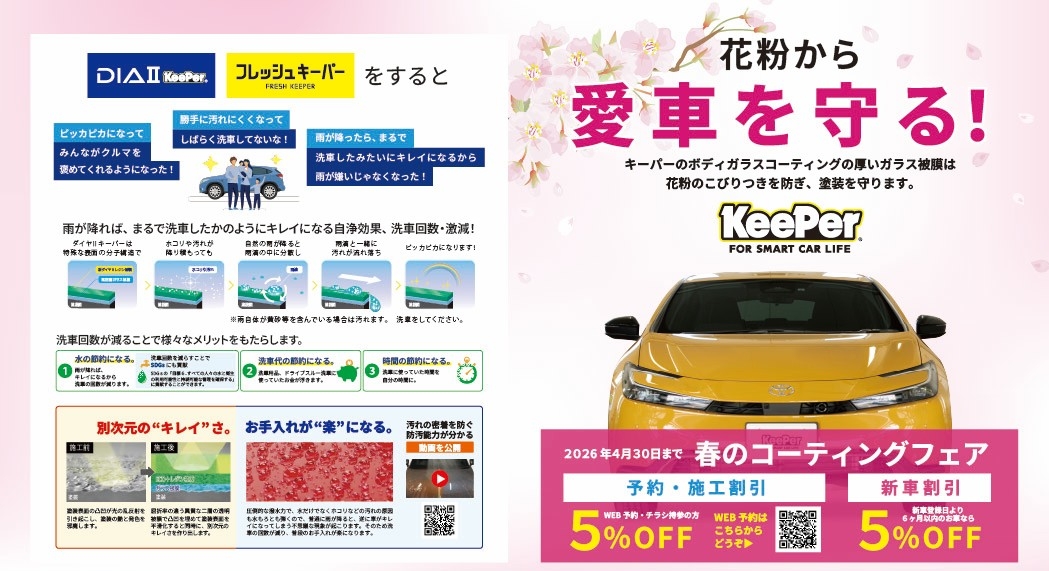 こんにちは。キーパープロショップ水戸元吉田のホンダです。春のコーティングフェアーのご案内です。3月中のコーティングのご予約でお得に施工できるチャンスです。...