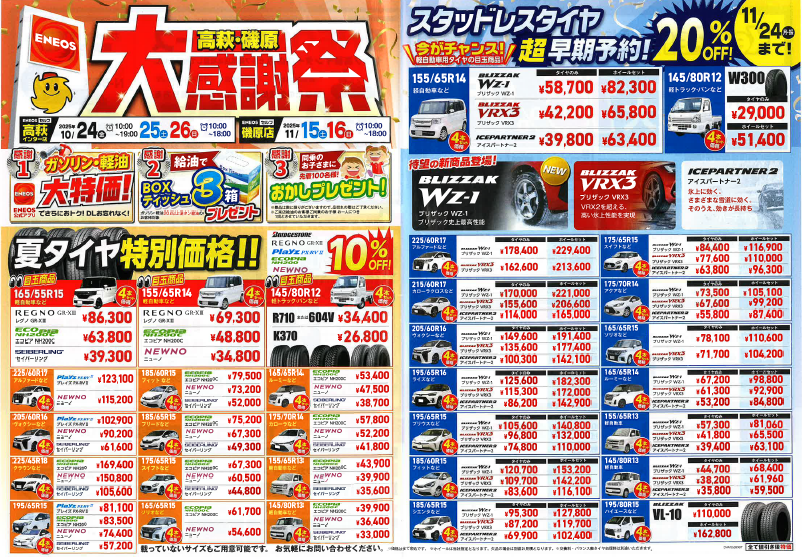 待望の新商品WZ-1を含む人気のブリザックシリーズ等が11月24日までのご予約で20%OFFでお求めすることが出来るチャンス!!