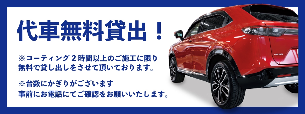 お電話にて事前確認いただければ代車も無料貸し出し可能!