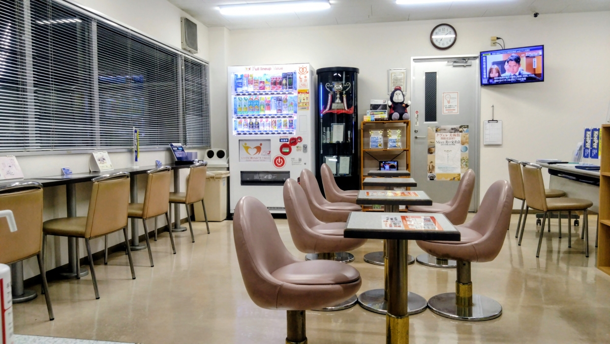 店内にはテレビや自販機、雑誌があり全面禁煙となっております。