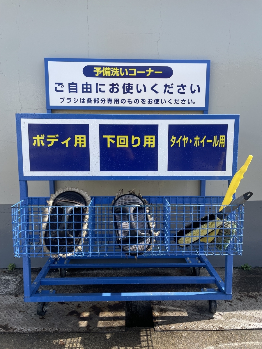 当店は手洗い洗車,コーティングの他に,セルフドライブスルー洗車,セルフ拭き上げ場を完備しており,お客様にあった洗車をご利用いただけます! ドライブスルー洗車の入り口には予備洗いを設けていますので,下廻りやホイールなどサッと洗い流せばよりきれいに洗車をすることができます!