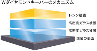 独特のガラス被膜が二層と特殊なレジン被膜が一層の
