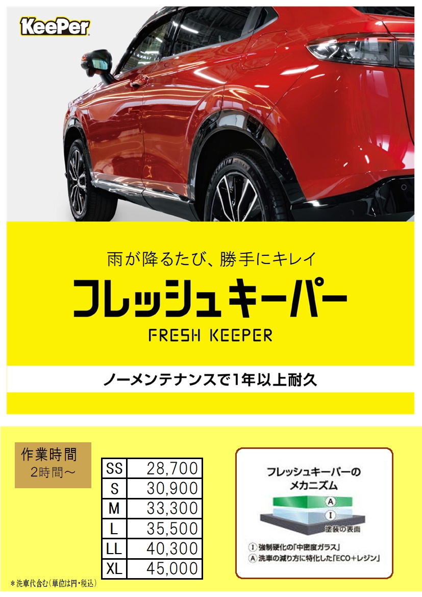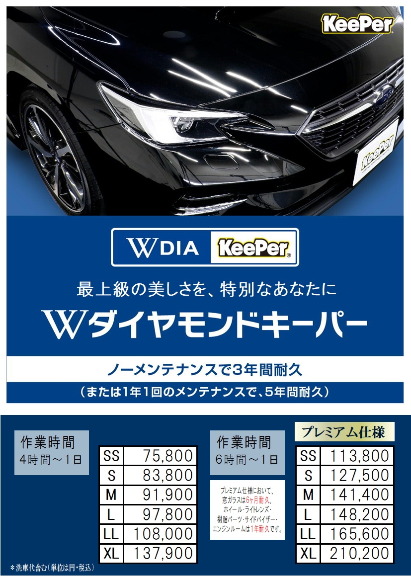 ※クリスタルキーパーは、液体の水の上から塗り、瞬間的に硬化させるので、ガラス被膜の密度はダイヤ、Wダイヤモンドに比べると比較的低くなります。その厚みも半分程度です。
