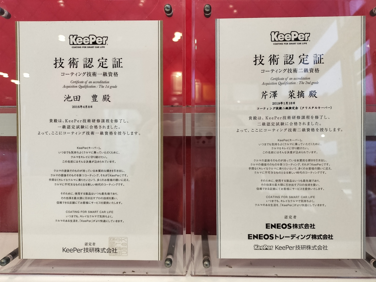 当店にはコーティング技術資格取得者が多数在籍しております。