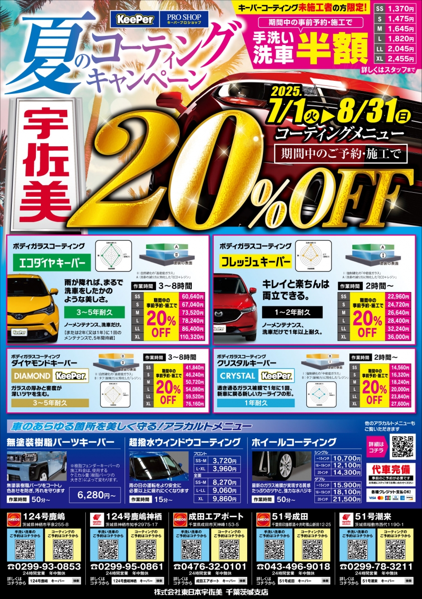 洗車、コーティングのご予約は0299-93-0853まで!!!