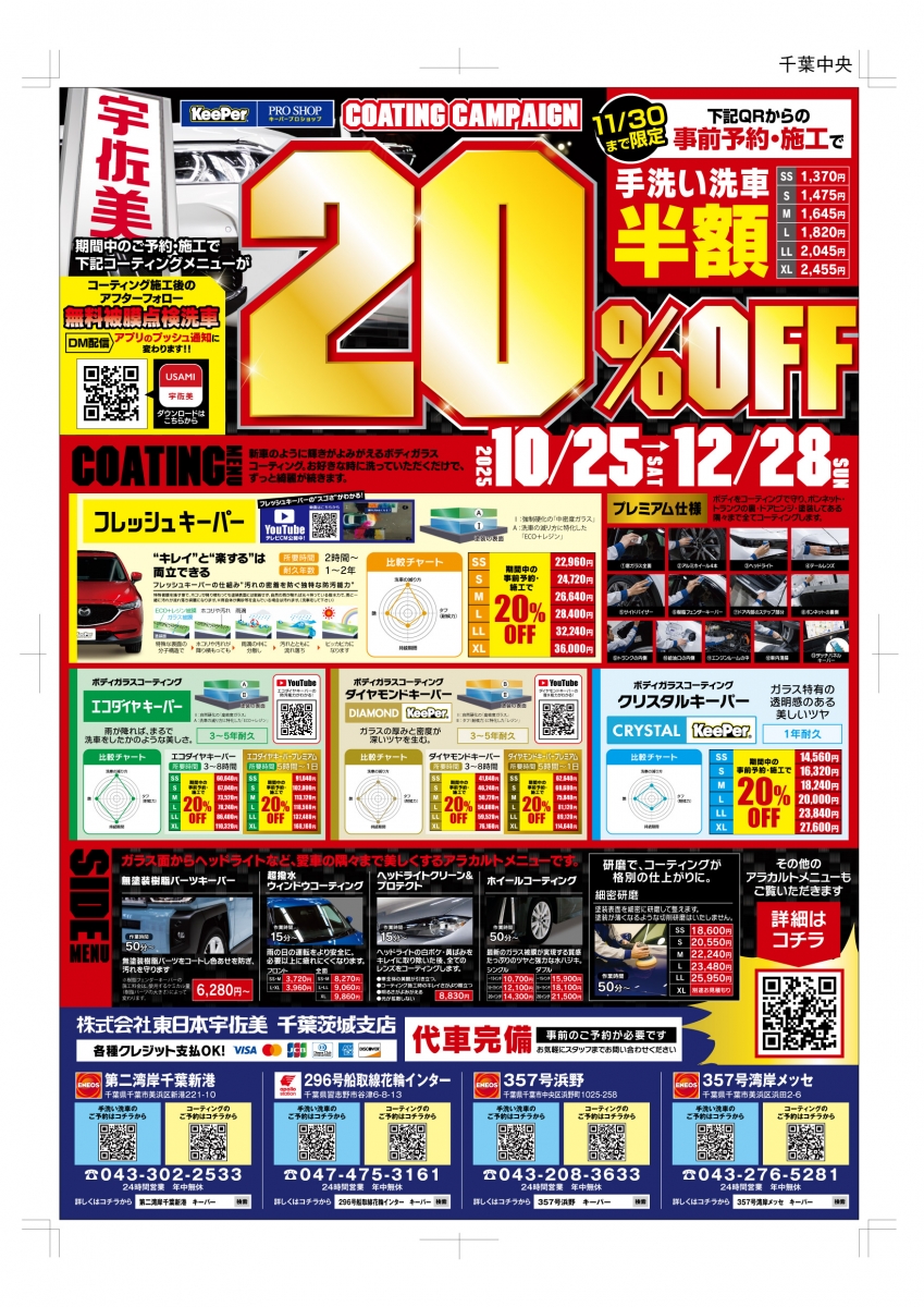 EXキーパー施工者在籍!! 手洗い洗車・ボディコーティングであれば是非、当店にお任せください!!