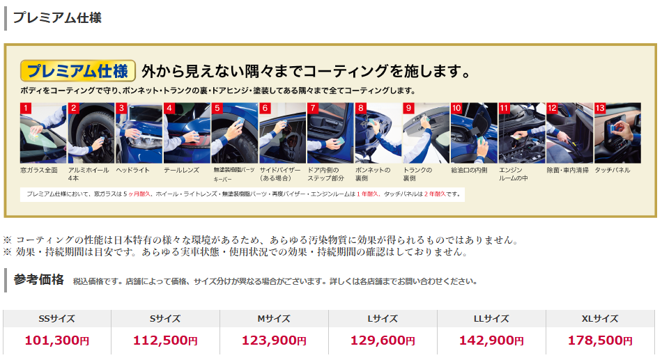 ※格サイズは、お車の表面面積に応じて区分されます。上の画像をクリックして検索!