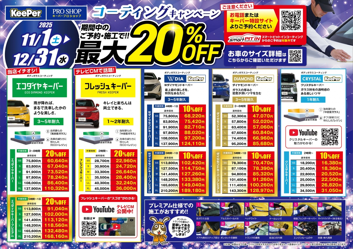 ウィンターコーティングキャンペーン!! 期間中の、ご予約・施工で 最大20%OFF!