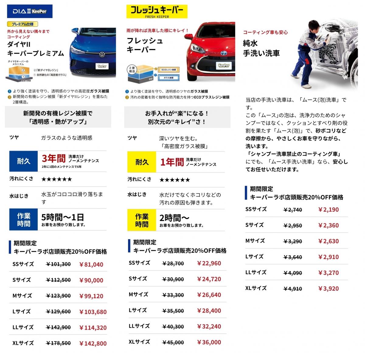 宇佐美盛岡南インター店のコーティングラインナップになります。
