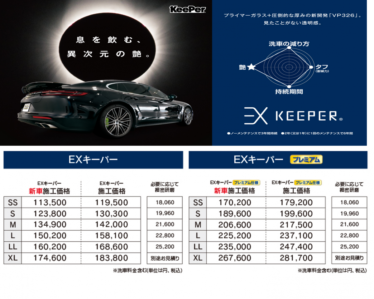新車にオススメ。最高級メニュー。EXキーパー。
