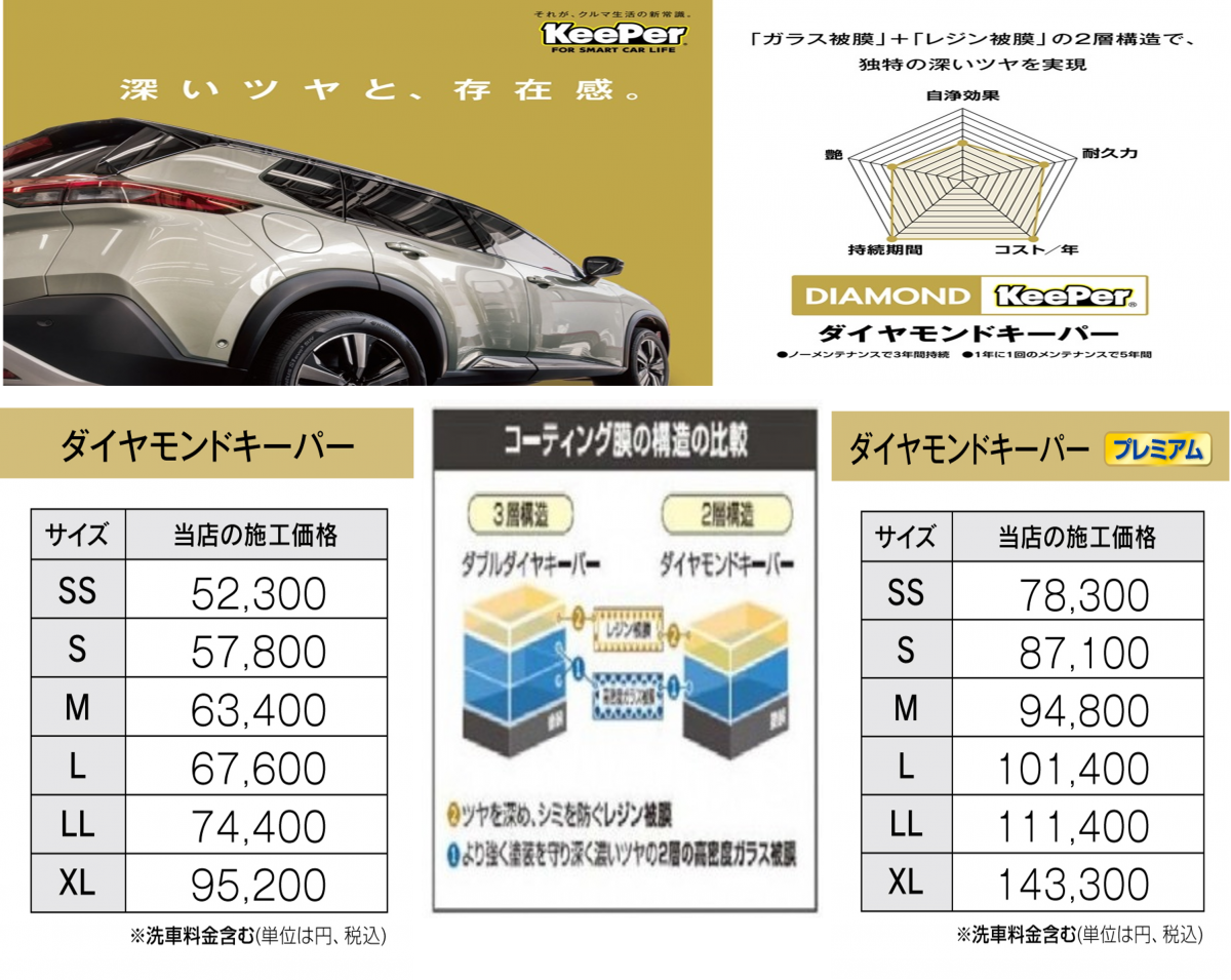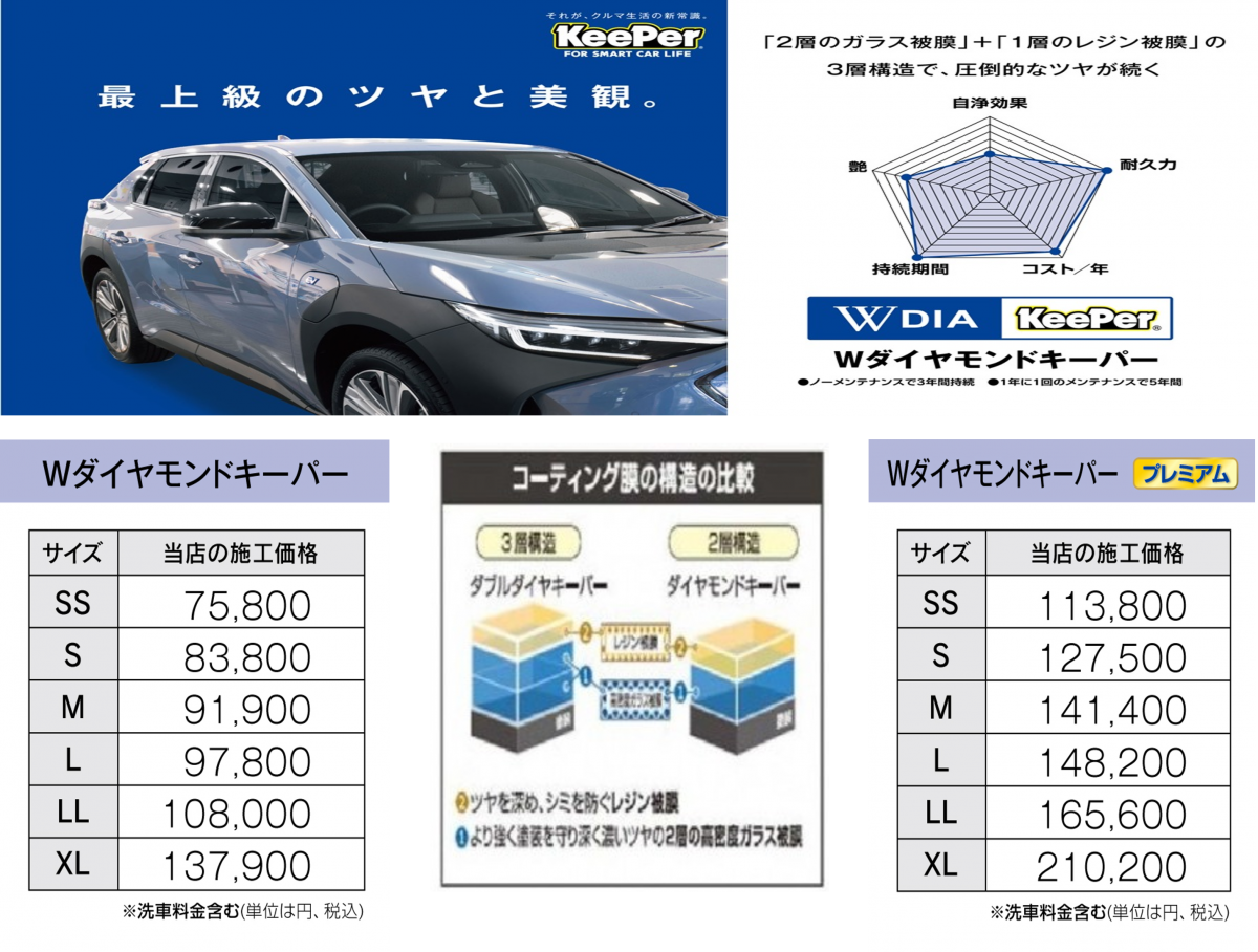 ダブルダイヤモンドキーパーと同等のツヤ&耐久力向上。