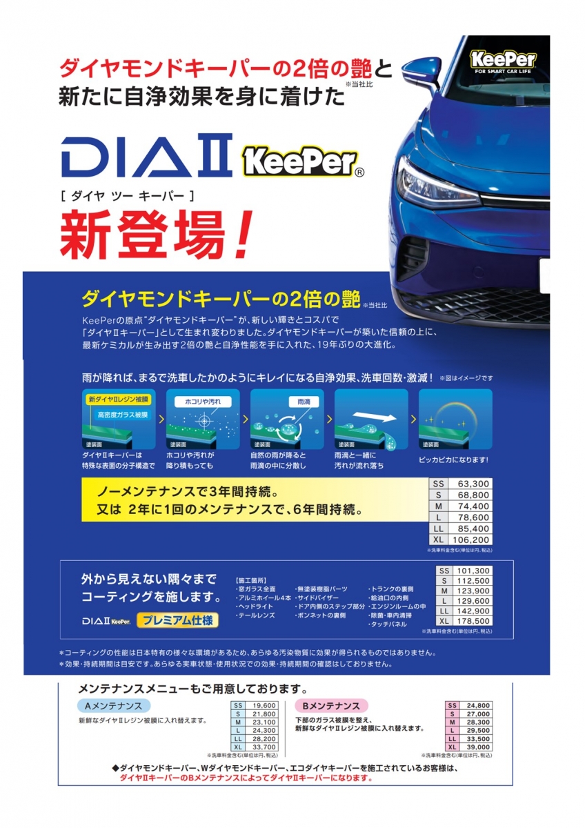 こんにちは!キーパープロショップ、カメイセルフ水沢中央店です(^^)/テレビCMでご覧になった方もいると思いますが、この度キーパーコーティングに新商品が登場しました。...