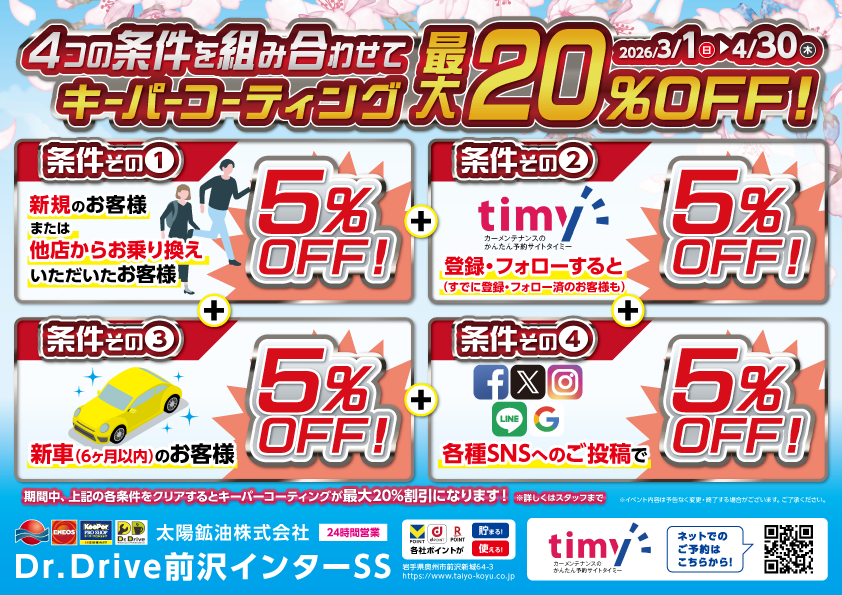 - 洗車・コーティング営業時間