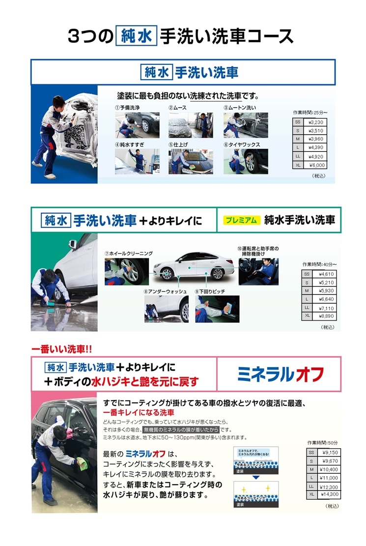 洗車メニューは以下の通りです。ご不明な点、操作方法はご遠慮なくスタッフまでお申し付けください!