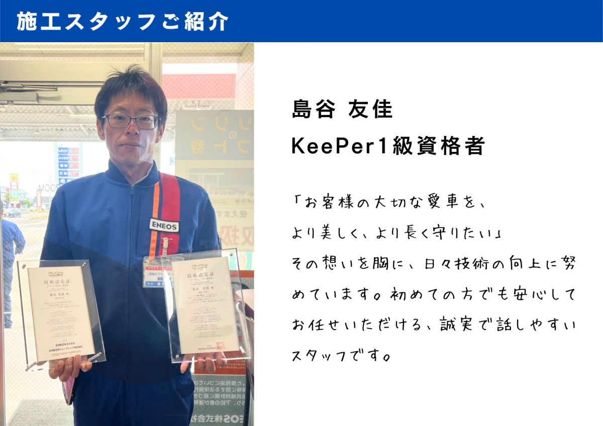 コーティング1級資格取得者によるプロの仕上がり!