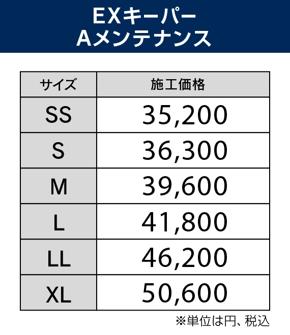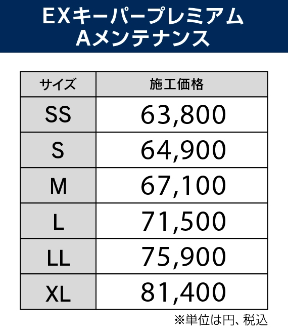 ※EXキーパーは新車用のため、納車1ヶ月以降もしくは1,000㎞以上走行のお車は必要に応じ