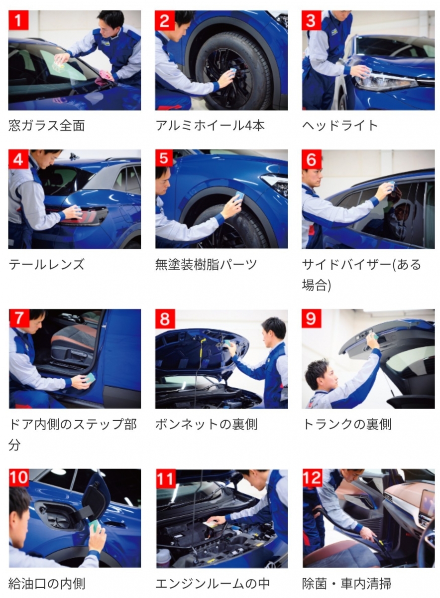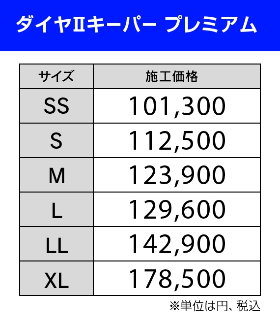 プレミアム仕様において、窓ガラスは5ヶ月耐久、ホイール・ライトレンズ・無塗装樹脂パーツ・サイドバイザー・エンジンルームは1年耐久、タッチパネルは2年耐久です。