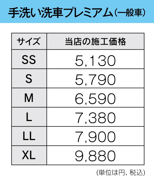 ※窓ガラスの状態次第では、別途油膜取りの料金が発生します。