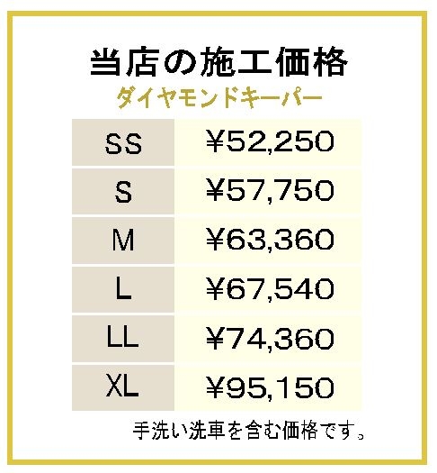 コーティングの料金は、お車のサイズで分かれています。