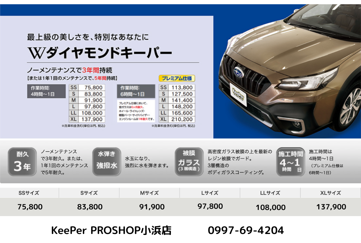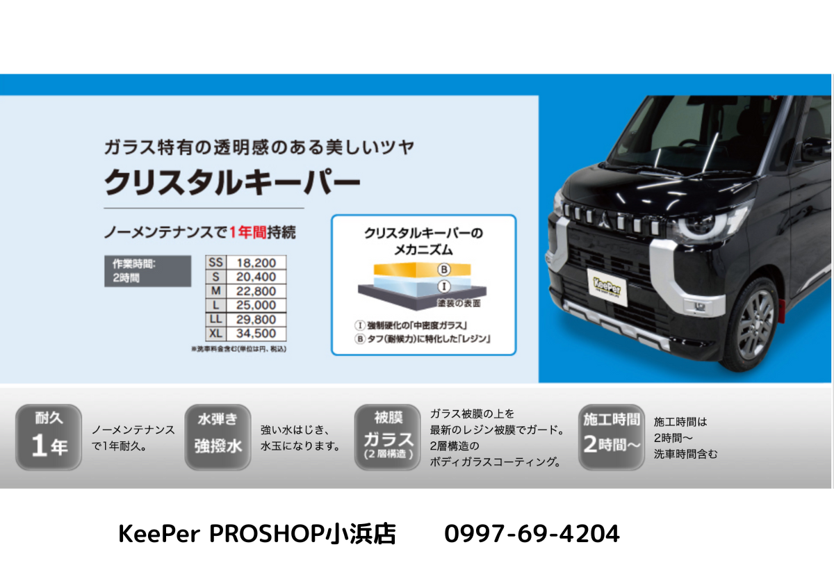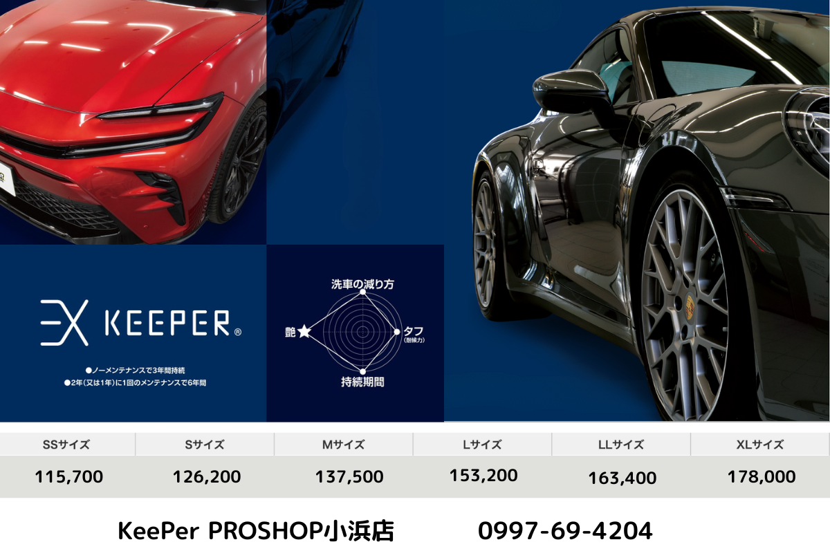A新車のお客様には「EXキーパー」や「エコダイヤキーパー」を選ばれる方が多いです。美しさを引き立てながら長期間保護する効果があり、新車時の施工に非常におすすめです。