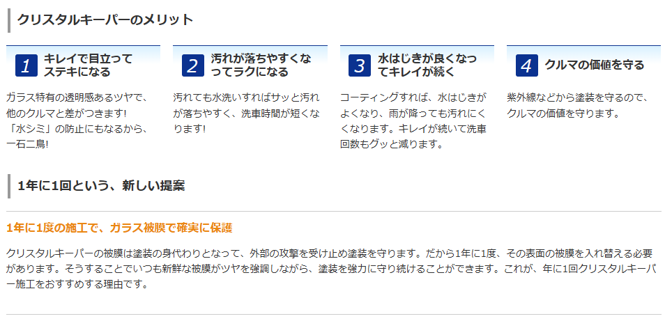 当店1番人気のクリスタルキーパー!! 1年間洗車だけ!ノーメンテナンス!! 施工時間も2時間〜 透き通るガラス被膜で1年に1回 新車に戻ります