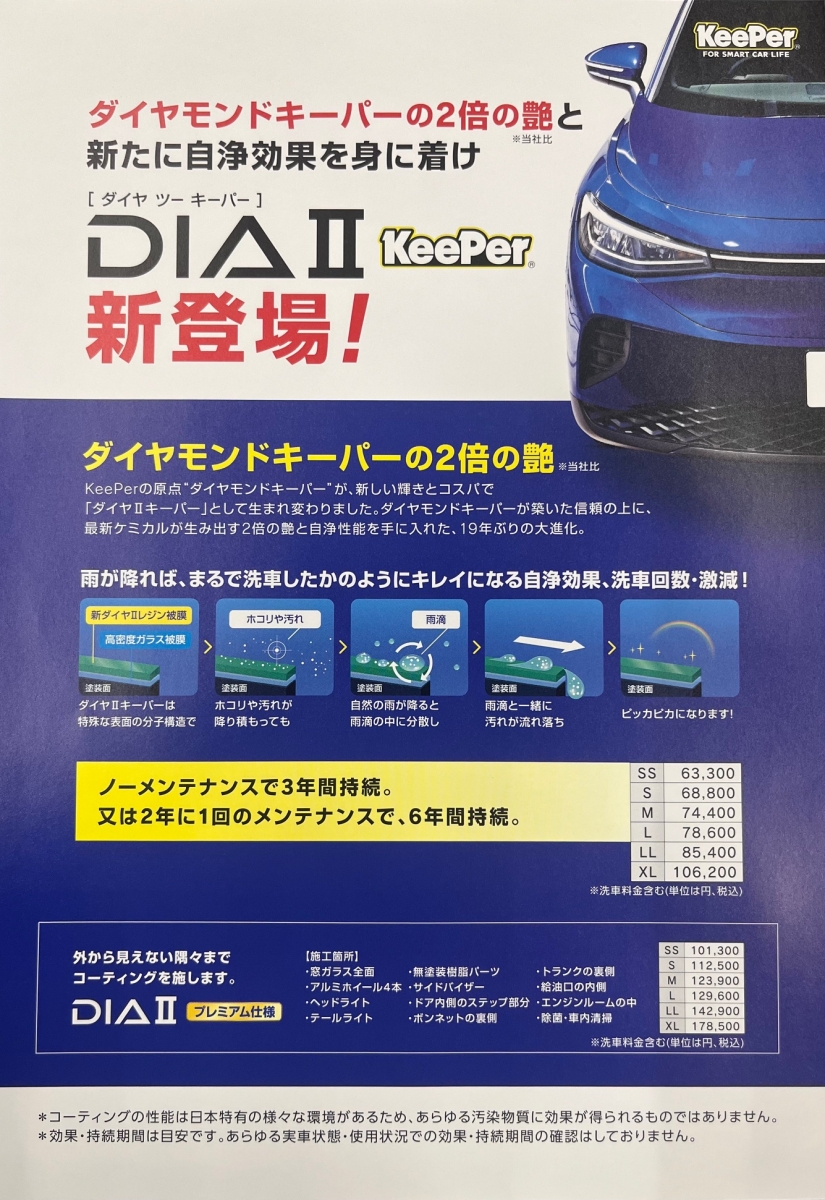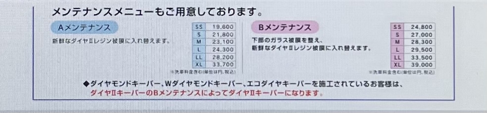 ・施工証明書の提示がない場合はキーパー未施工車の金額となりますのでご了承ください。