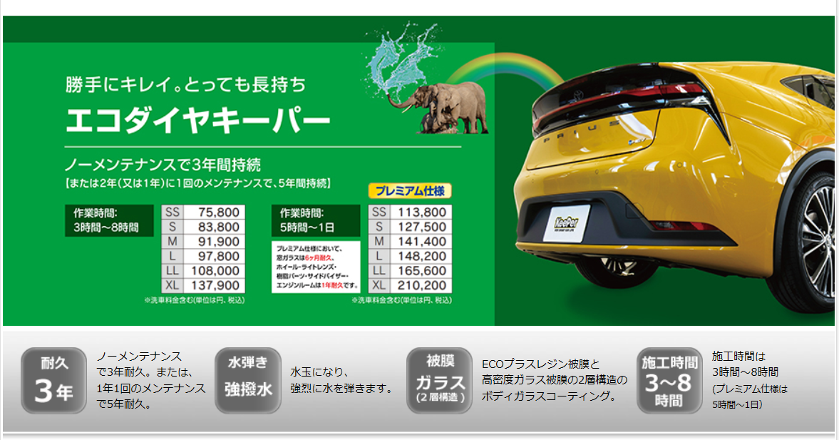 1年間 ノーメンテナンス 洗車だけで1年耐久