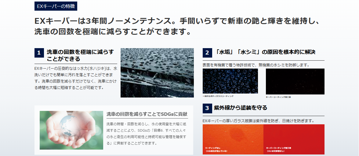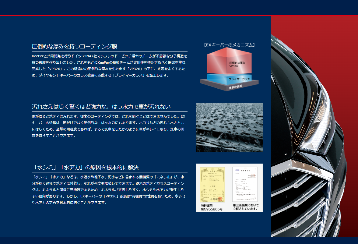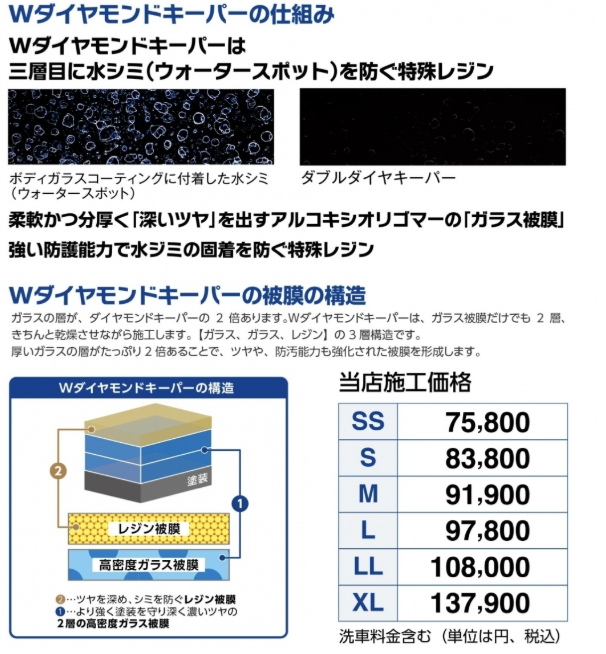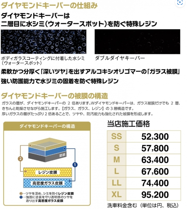 従来のダイヤモンドキーパーよりも深い艶、強力な自浄作用