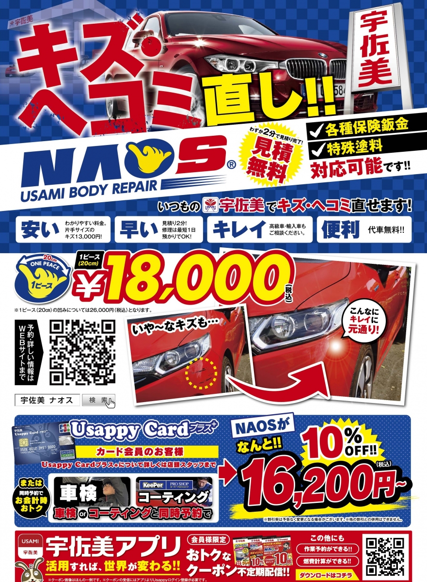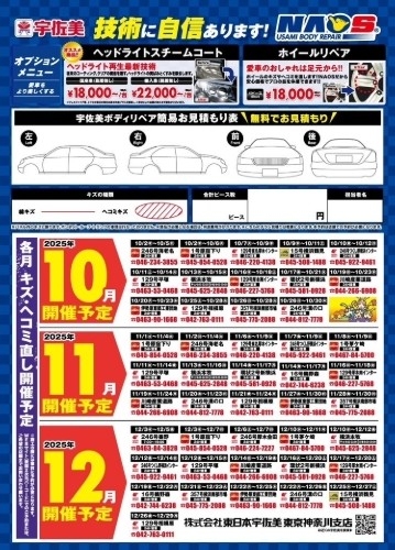 ※作業不可なキズ、車種、色等ございますので、事前に来店の上相談をお勧めいたします。