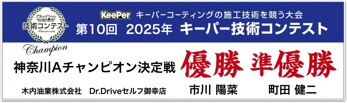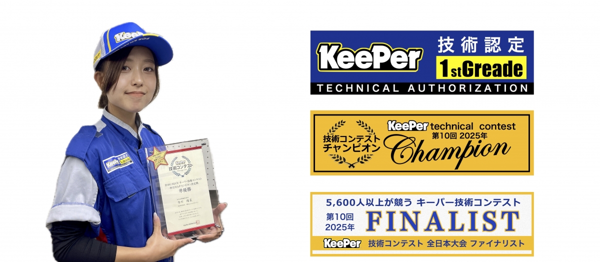 - 国家自動車整備士やコーティング技術資格者の在籍はもちろんのこと、キーパーコーティング技術を競う「キーパー技術コンテスト」の神奈川県チャンピオンも在籍しております。