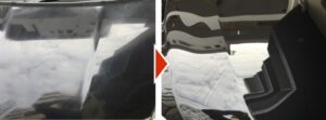 虫の死骸のこびりつきを専用のケミカルと道具を使用し除去します。
