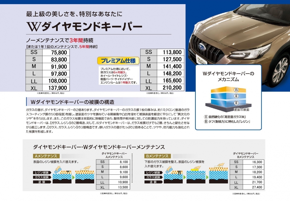 ※EXキーパーは新車用ですが、経年車でもオプションの研磨処理を行う事で施工可能になります(塗装状態によっては施工不可)
