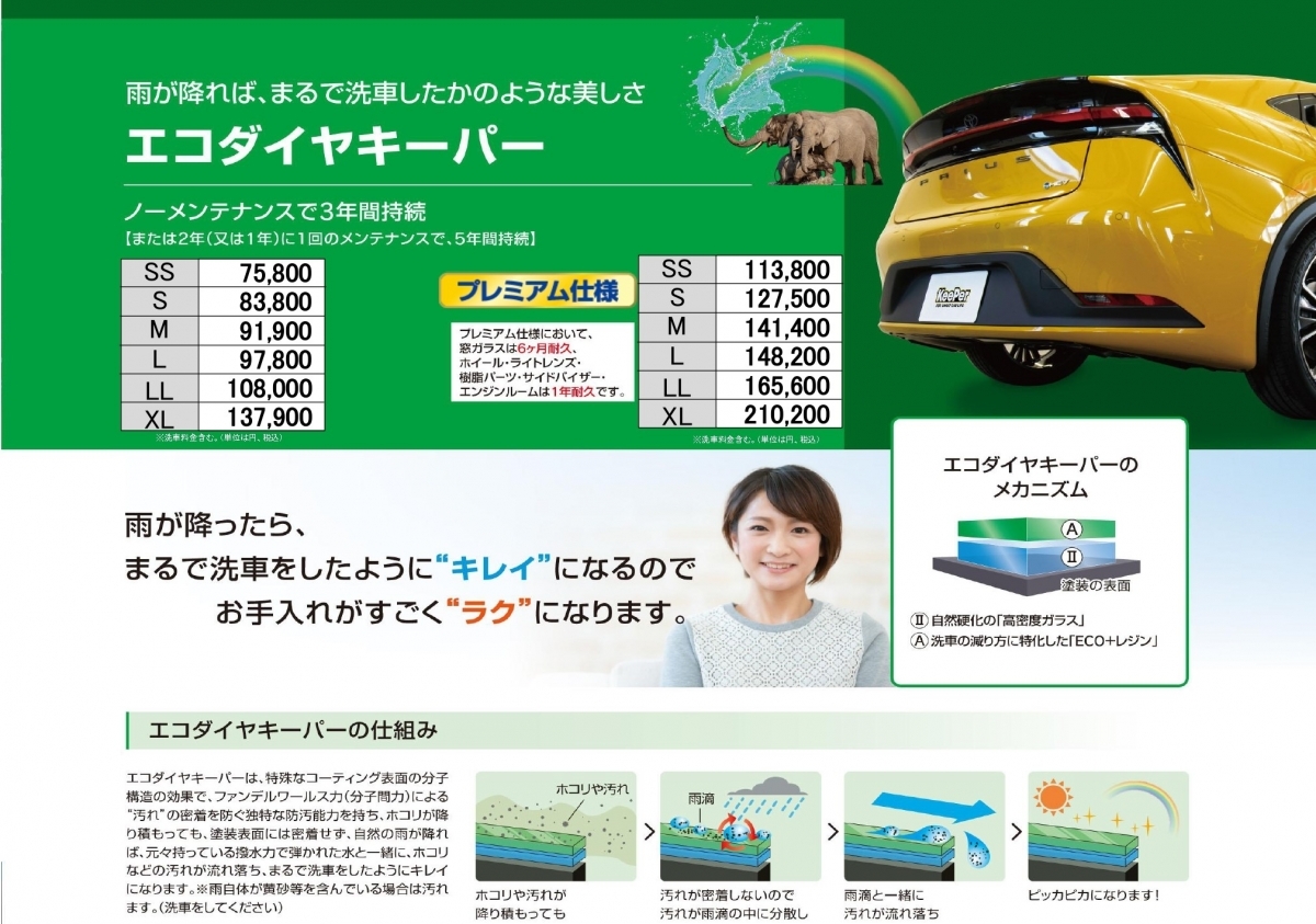雨が洗車になる!!これで汚れにくくなるので普段の洗車回数も減ります!!