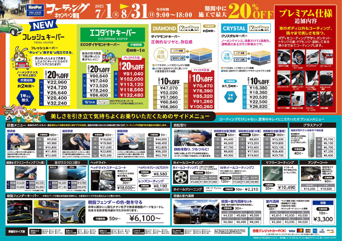 当店はキーパーコーティング技術認定店になります。お客様の大切なお車を一台一台丁寧に施工させていただきます。