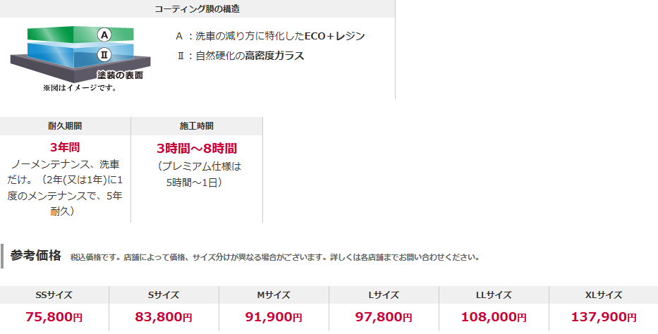 お車の大きさに応じて施工料金が変わります!!
