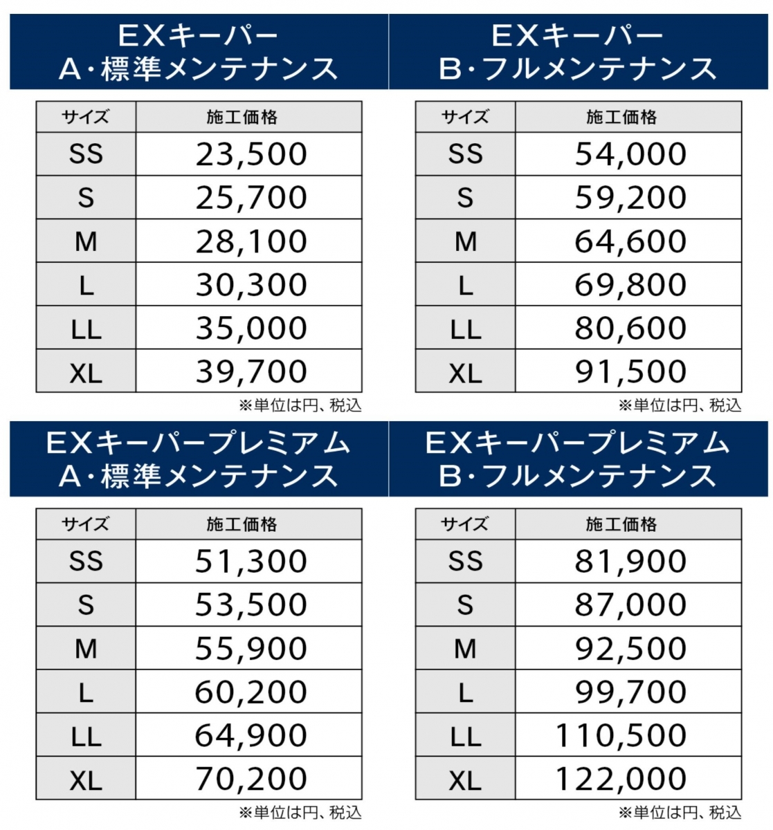 ●圧倒的な厚みを持つコーティング被膜 EXキーパーは6年間持続(2年又は1年に1回のメンテナンスをした場合)