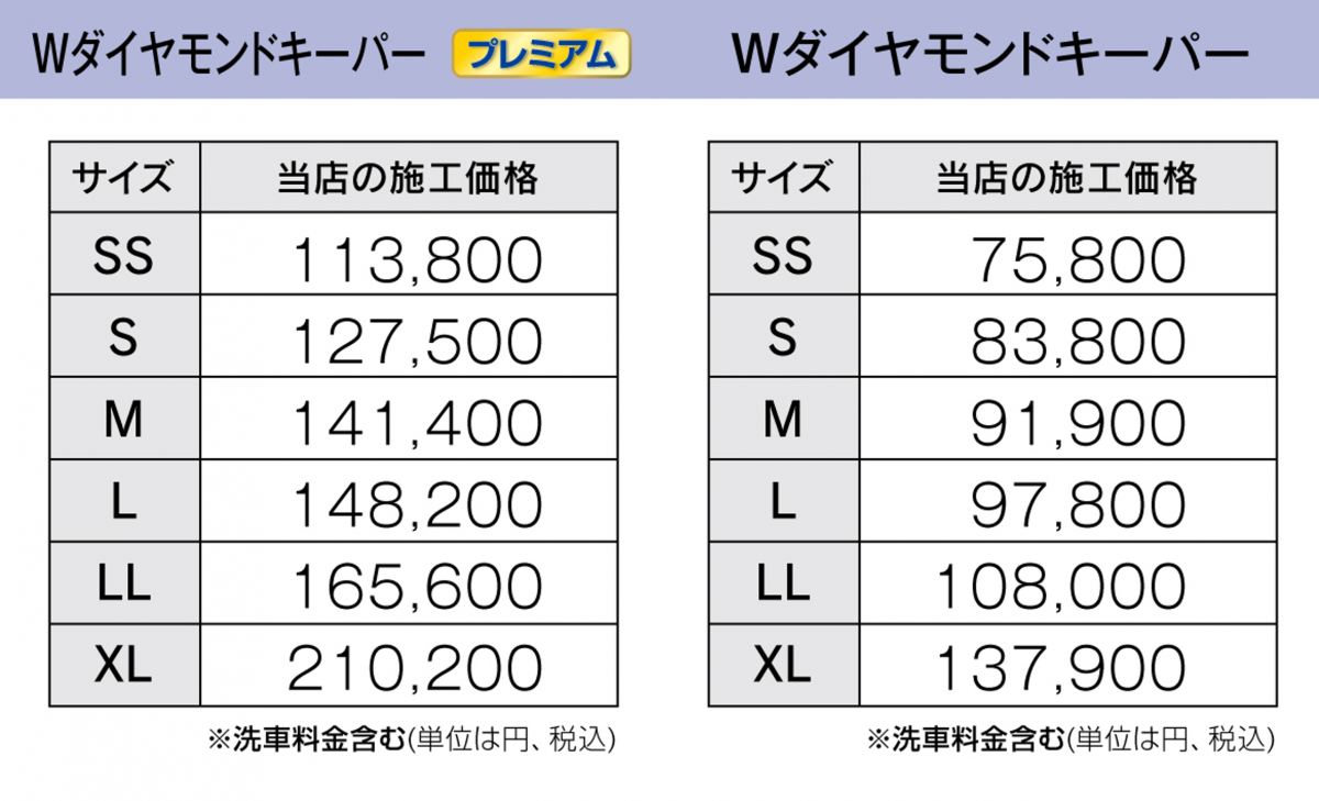 お車の大きさに応じて施工料金が変わります。