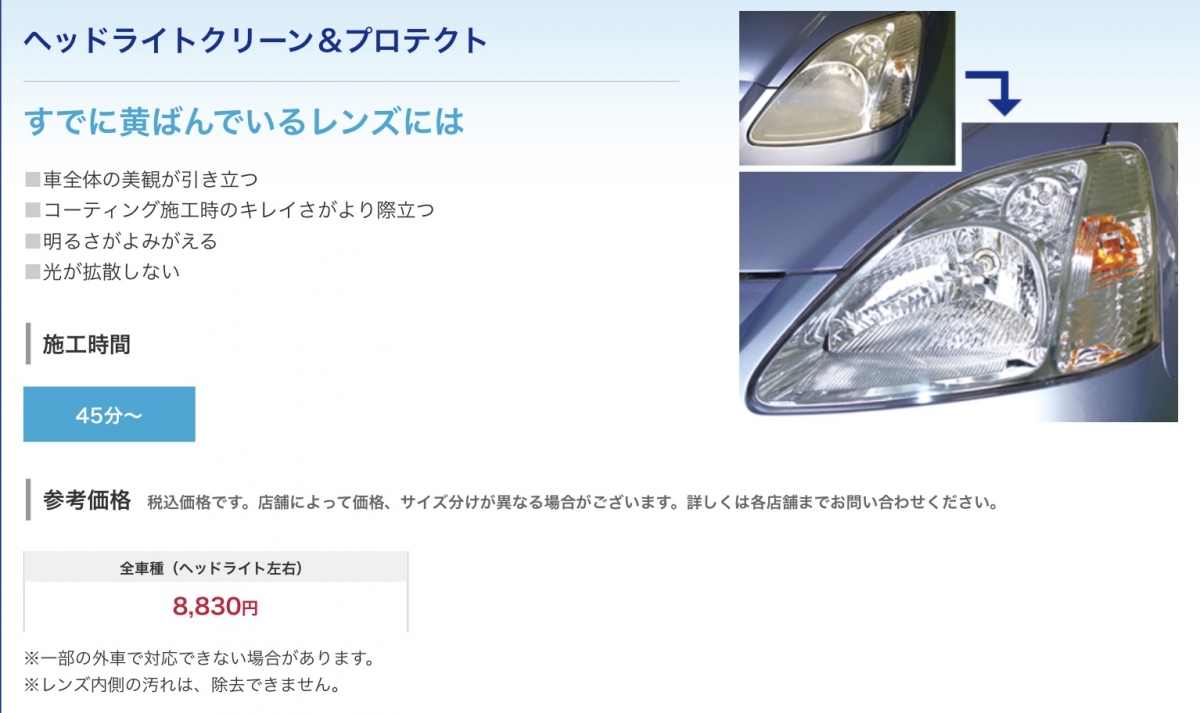 ボディのコーティングと同時に施工すればボディもライトもパリッとキレイになりますよ。