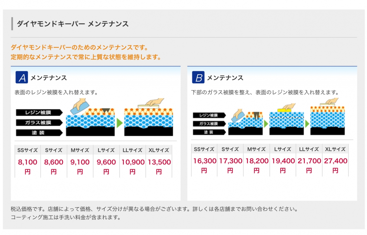 コーティング・洗車料金はお車のサイズによって価格が違います。