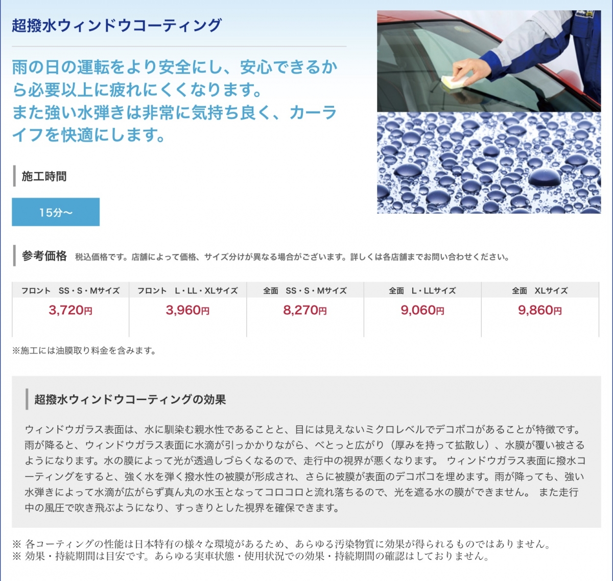 1年に1回の施工で、ガラス特有の透明なツヤと輝きで愛車を守ります。更には、強い撥水力で粒々の水玉ができます。