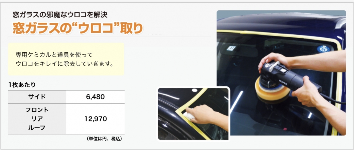 専用ケミカルと道具を使って、じっくり磨くことで、お車の窓ガラスを傷つけることなく、確実にウロコを除去します!