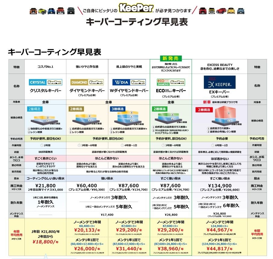 ※下のバナーをクリックすると、各キーパーコーティングコースの詳しい内容がわかります♪ ↓↓↓
