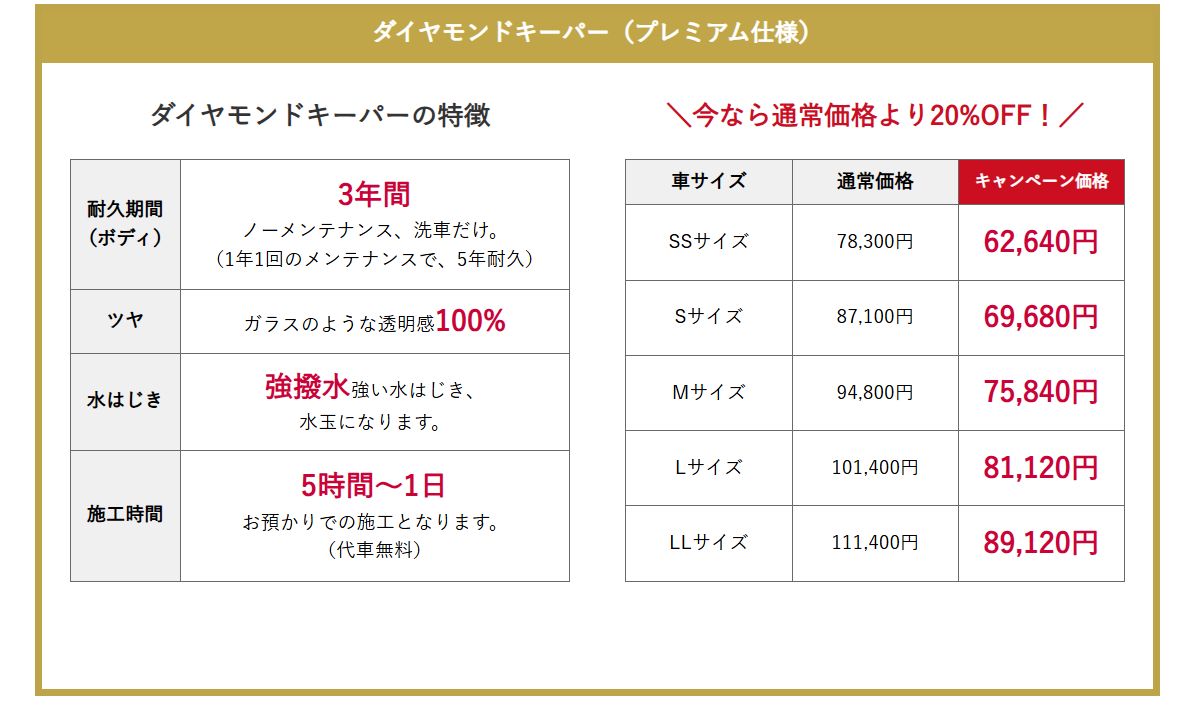 ボディコーティングと同時施工でサイドメニュー15%OFFのキャンペーン開催中です! 詳しくはお問合せ下さい!