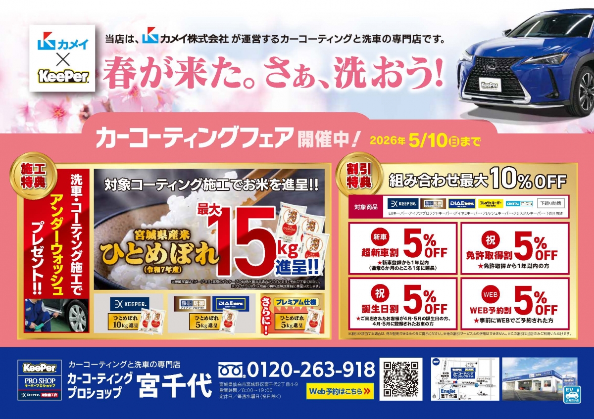 おはようございます!カーコーティングプロショップ宮千代です♪いつも当店のブログをご覧いただきありがとうございます( ^^) _U~~今日の天気はどんよりな曇りですが、当店は全天候型密閉ブース完備、使用...