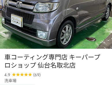 コーティングの種類も分からない状態で相談に行ったのですが、細かく説明して下さり助かりました。施行前施工後もしっかり説明をしてくださりまた機会があればお願いしたいと思いました。また是非他の人にも紹介したいと思いました。 総じて接客が素晴らしかったです。ありがとうございました。 「GoogleMAPの口コミより転載」 apollostation カーウォッシュ 名取北 【KeePer PRO SHOP 仙台名取北店】