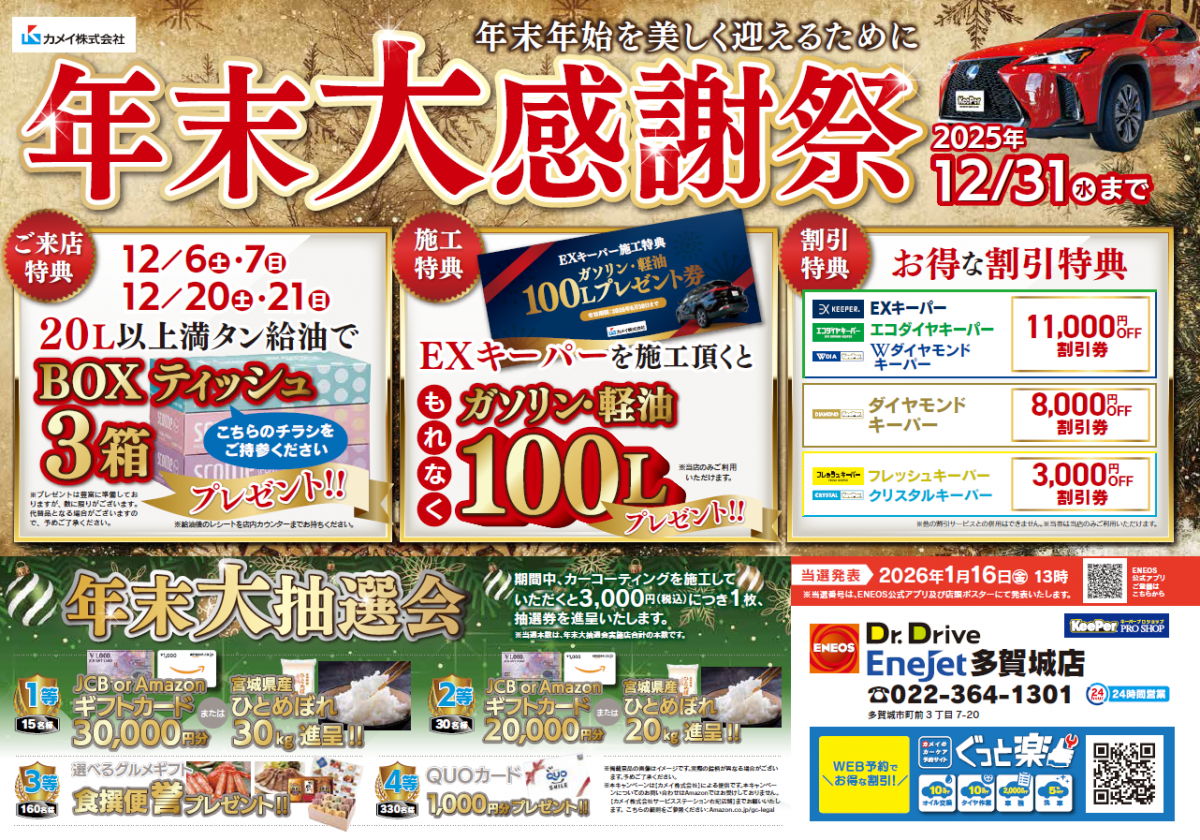 こんにちは。キーパープロショップ多賀城店です。毎年恒例の年末大イベントを今年も開催いたします!本イベントは多賀城店として一番大きなイベントです。特典が多いイベントなので是非チェックしてください!...